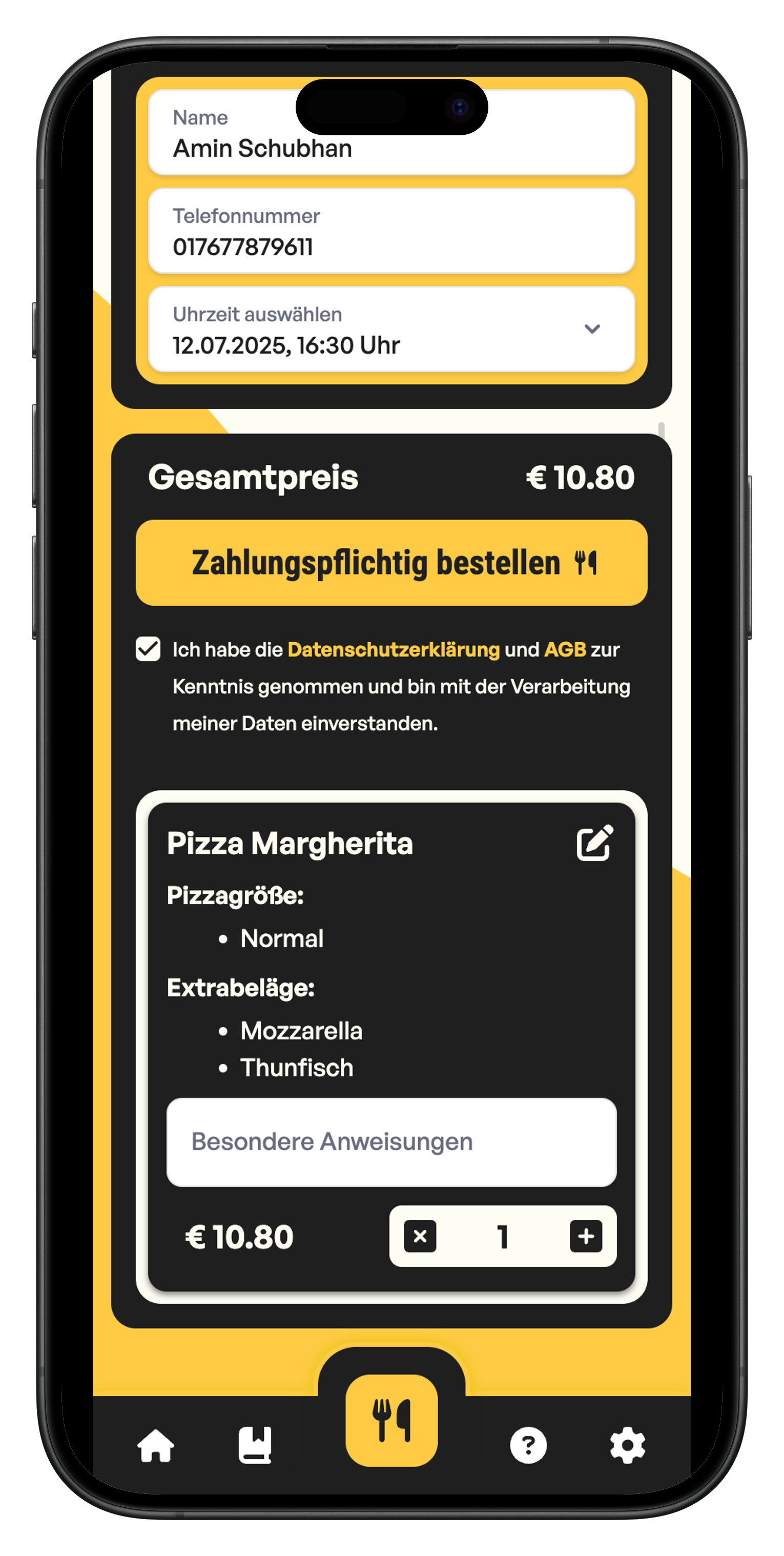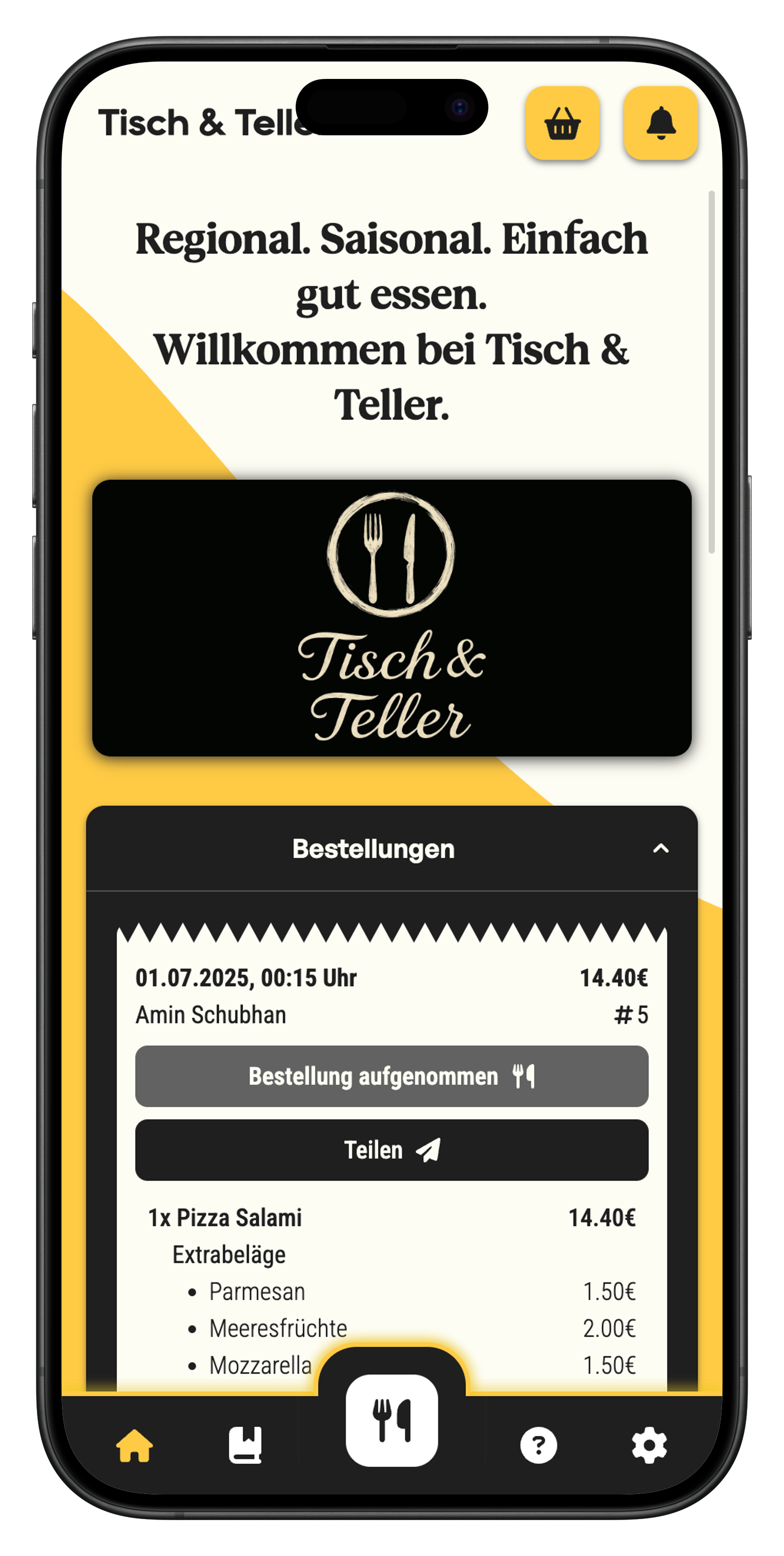 Deine Gäste bestellen digital – bequem von Zuhause oder unterwegs. Du empfängst alle Bestellungen direkt an dein Gerät. So sparst du Zeit, entlastest dein Team und erhöhst deinen Umsatz - ohne extra Aufwand. Deine Speisekarte und Preise kannst du selbst anpassen!